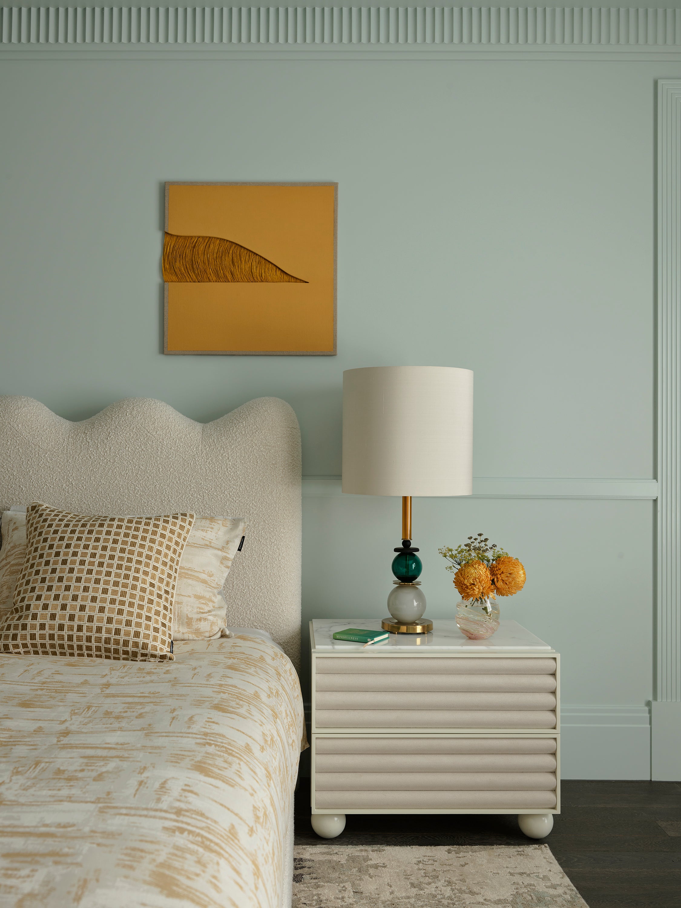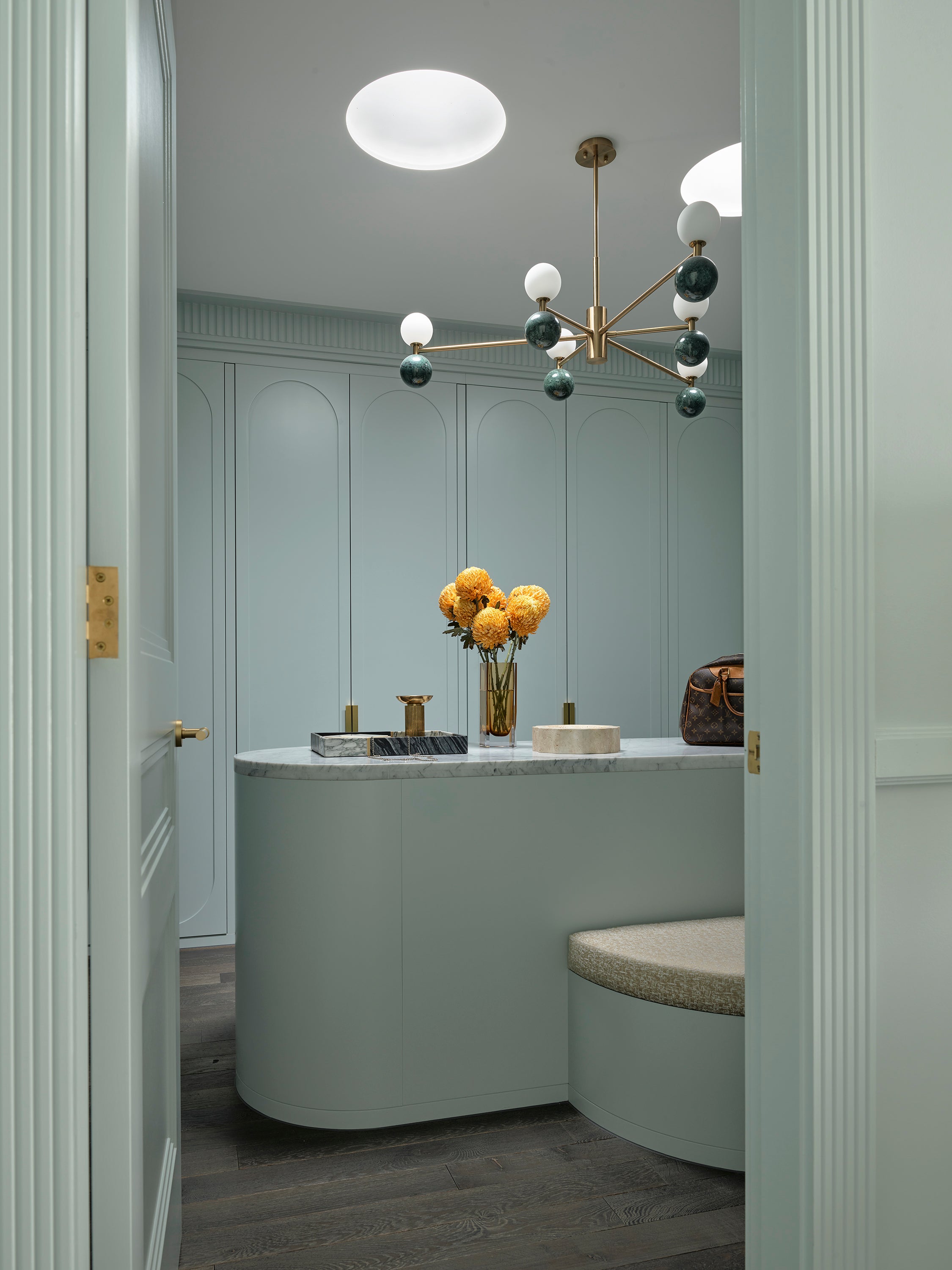 Upstairs, a mix of elegant pastels, contemporary European furniture and luxurious finishes craft a detailed yet clean, modern, and airy interior.