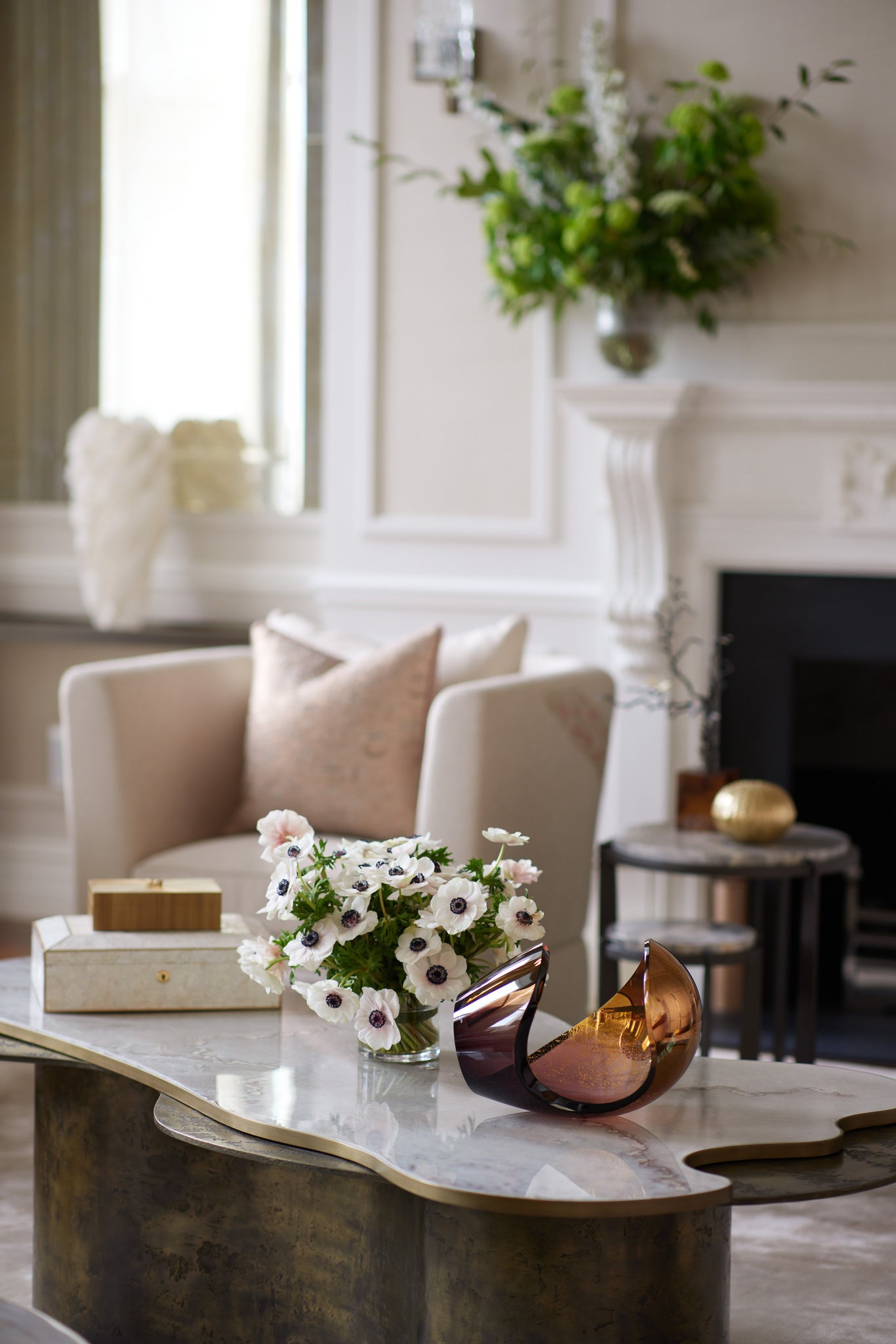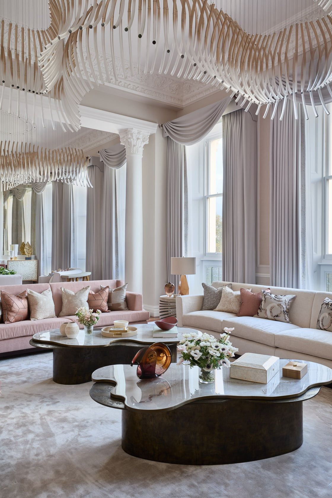 A neutral palette is the base for this elegant reception room, with soft pinks, golds and bronze tones adding depth and warmth to the entertaining space. When entering the reception rooms you instantly feel relaxed, it is such a welcoming interior.