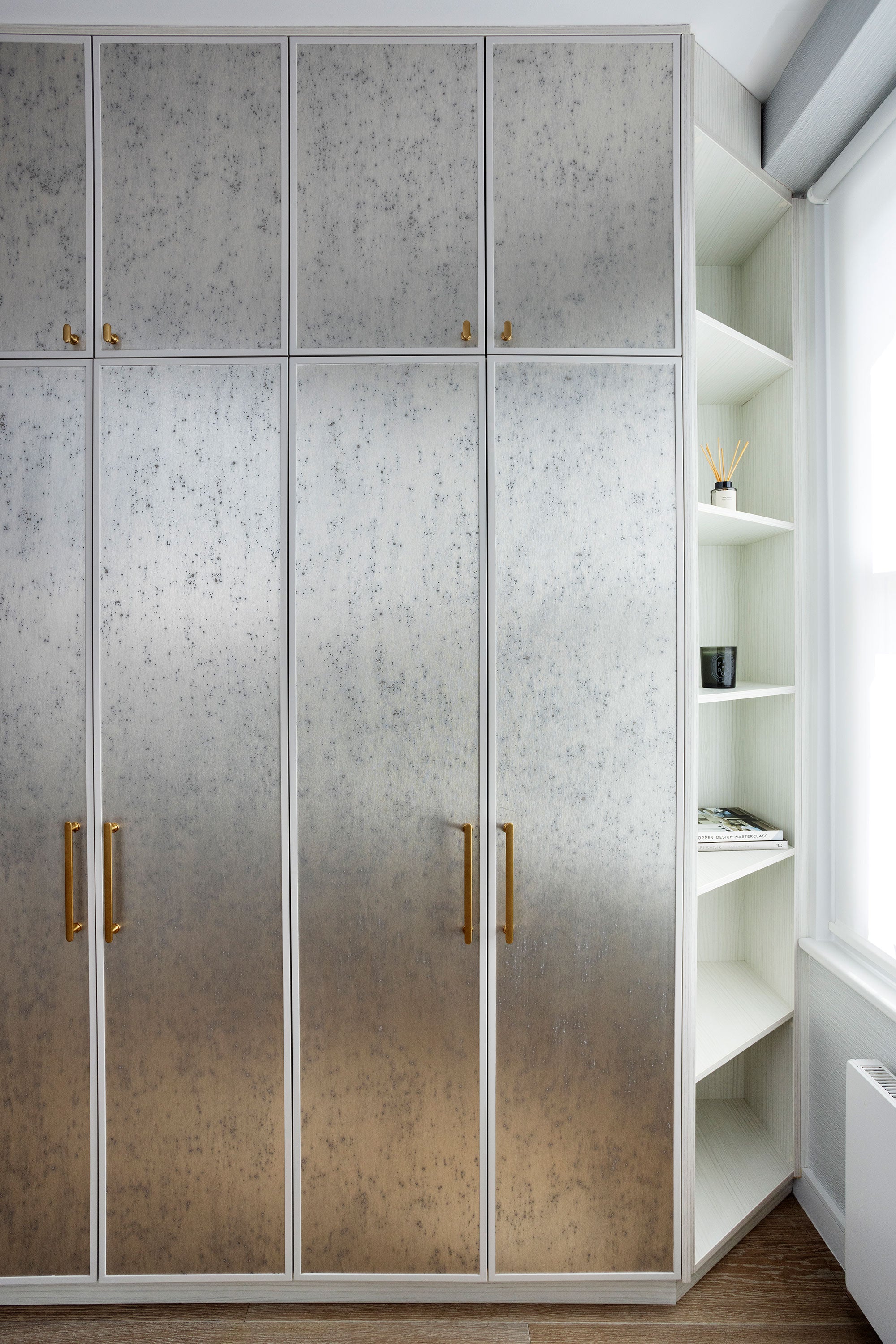 For the bedrooms, the luxurious bespoke built in wardrobes by HUX have a mix of grooved doors and micro-shaker doors featuring an inset metal effect wallpaper, elevating the clients’ desired storage space.