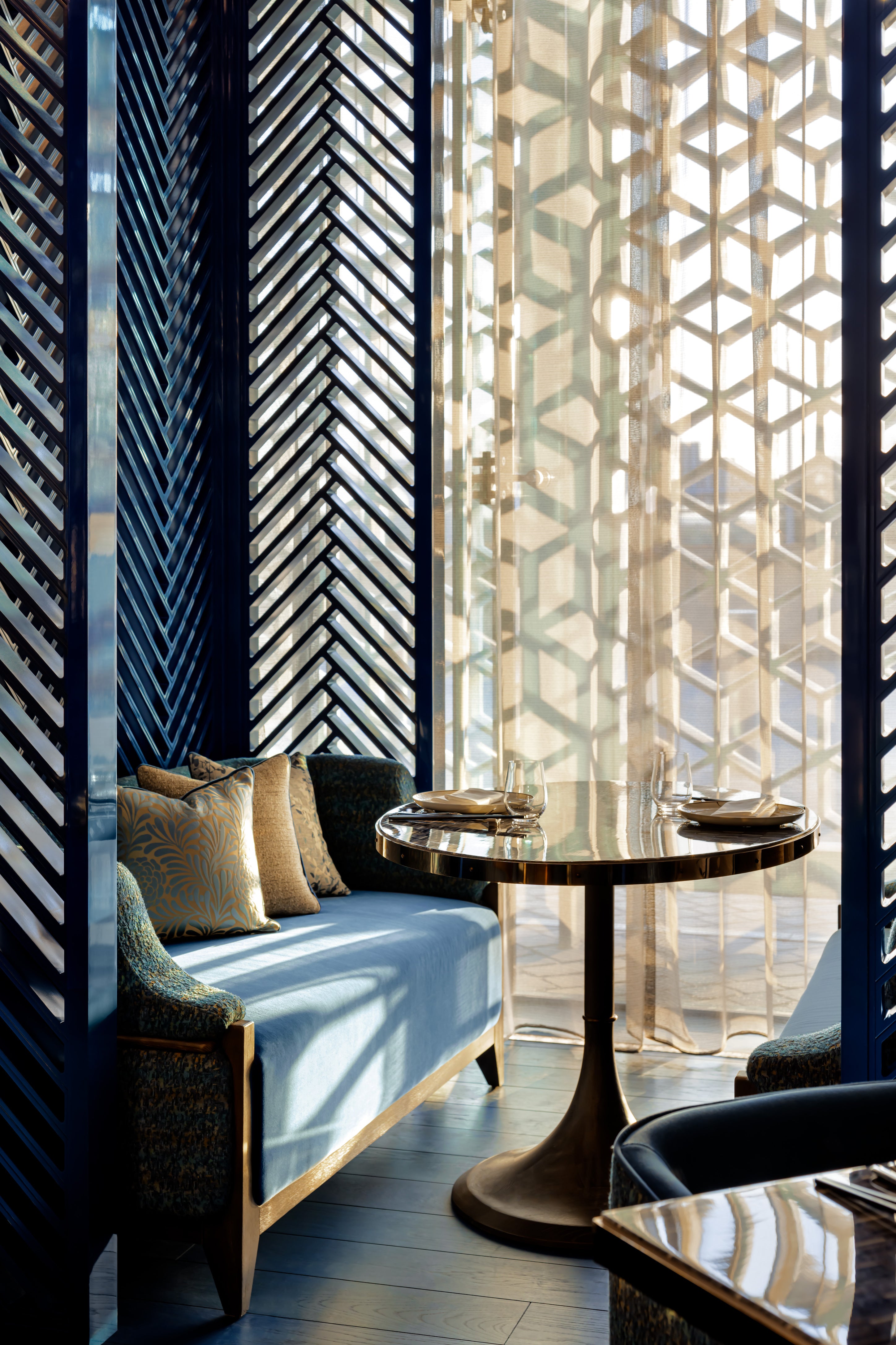 With a capacity of 104 guests, the space is divided into two dining rooms and a bar lounge. The design concept of the two main dining rooms is of two souls in search of perfect harmony, the union between flamboyant and elegance complimenting the whimsical aesthetic touches of Chinese opera, where East and West merge seamlessly.