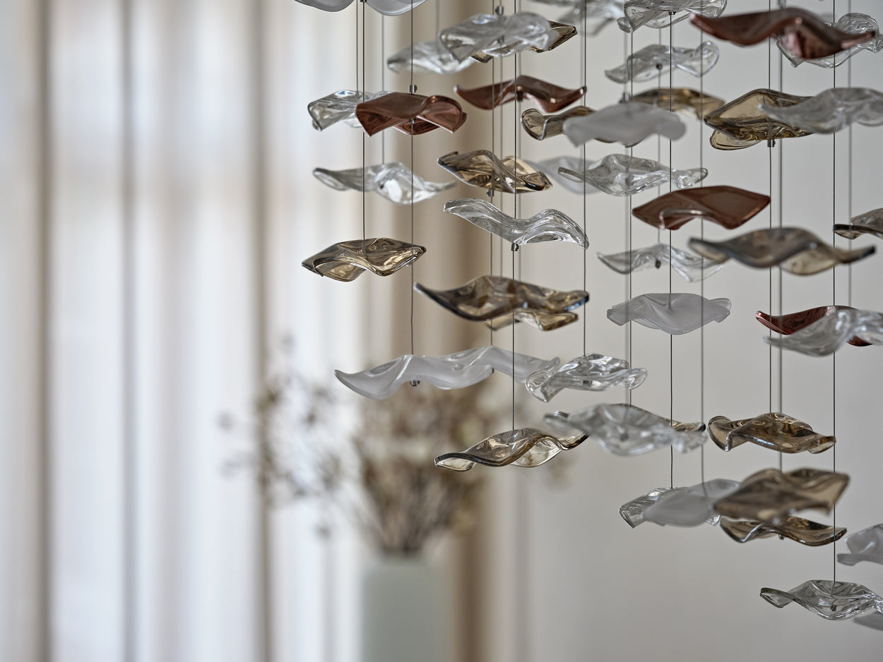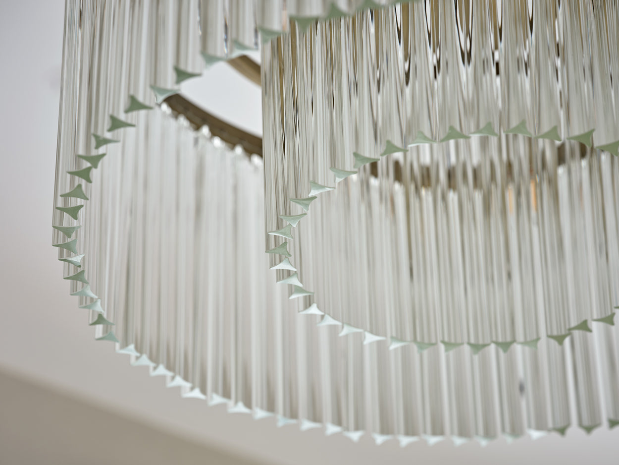 The entrance hall is simply stunning with a bright white marble floor with soft grey veins; the perfect foundation to welcome guests and set the stage for the stunning lighting sculpture.