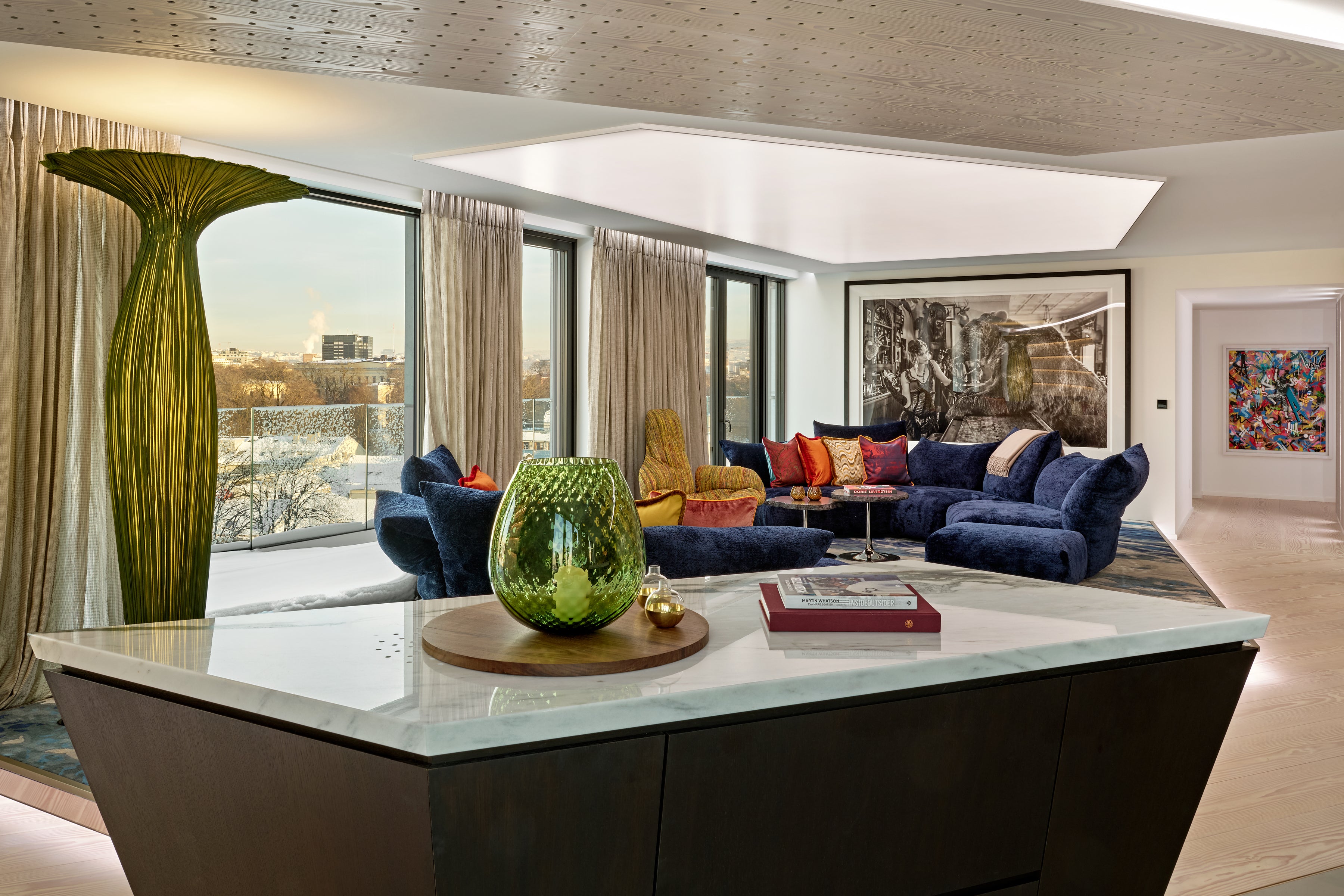 Inspired by the Fjords of Norway, the flow of the space is set from the moment the door to the penthouse is open. With visibility across the space and connection with the landscape and horizon. Each space from the living area to the kitchen, the dining area and to “The Nook” are shaped in the angular form of a Fjord.