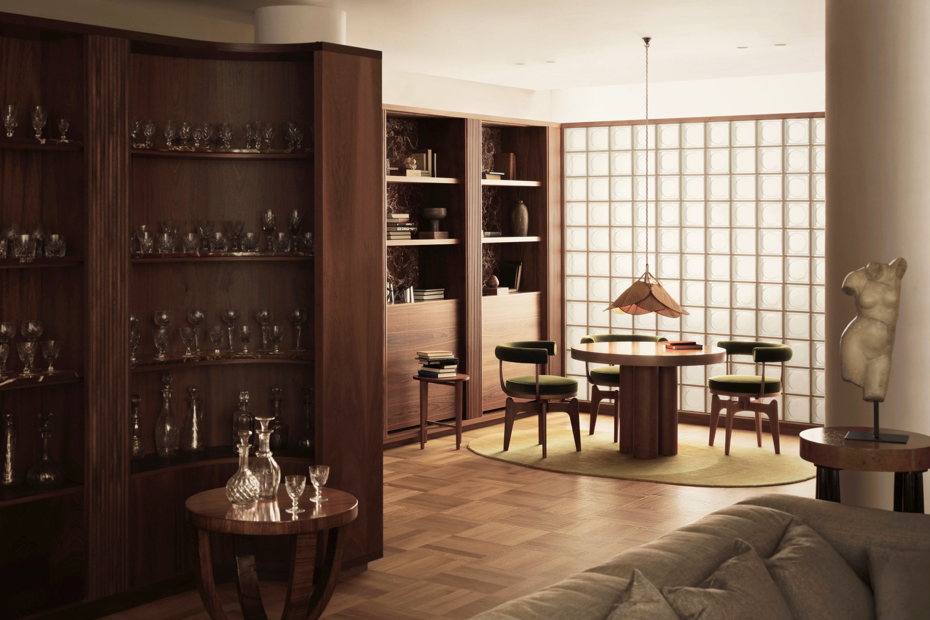 ‘The inspiration for this project came from Yves Saint Laurent’s Grand Salon at Rue de Babylone in Paris. We were interested in finding an authentic design language for this project, balancing the Art Deco references with the 1960s & 70s Modernism’ - commented the designers Che Huang and Alexy Kos. “The spacious Living Room is a social space where the guests can convene in a warm and relaxed environment.”