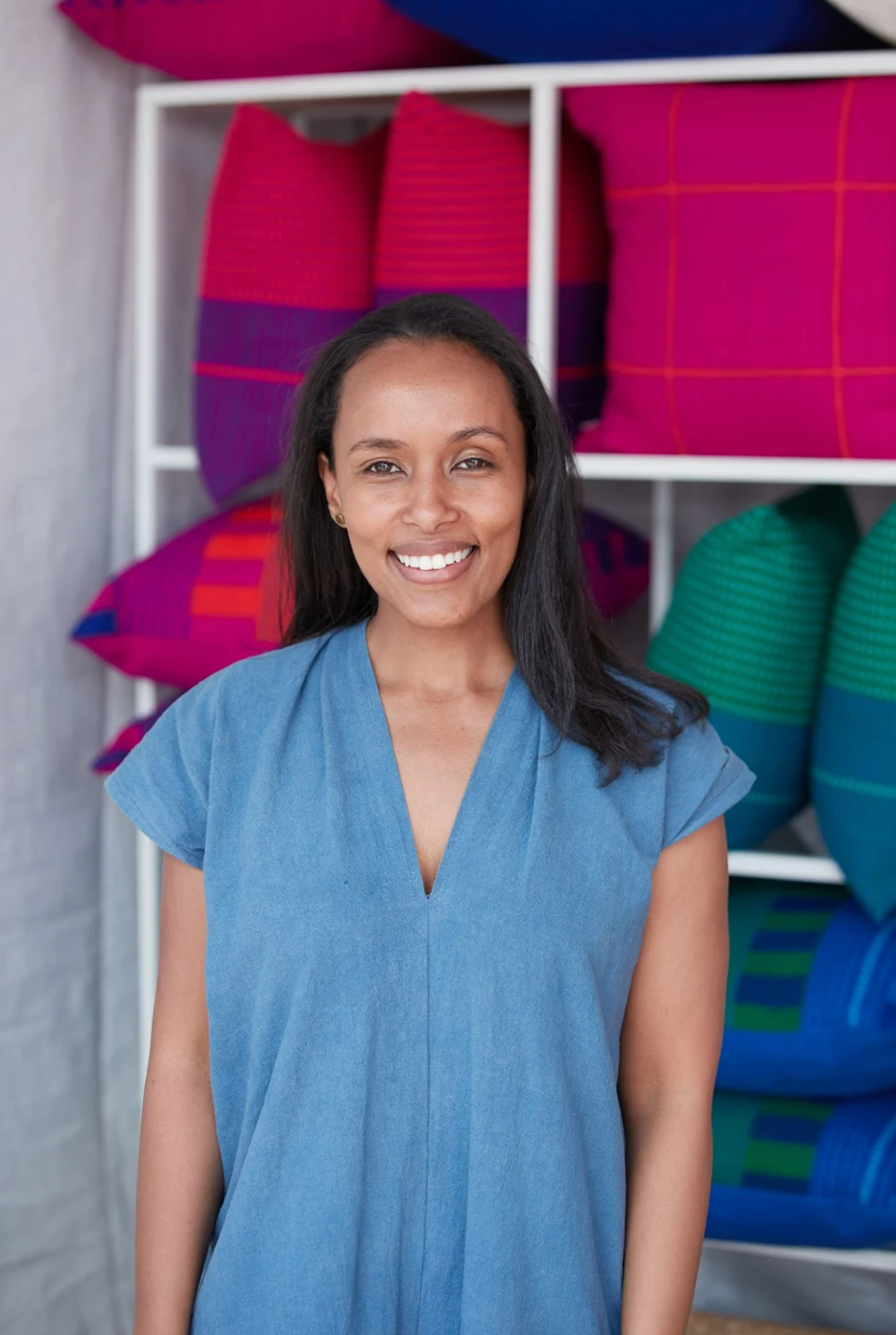 Hana Getachew founded Bolé Road Textiles to connect home and heritage. Born in Ethiopia and raised in New York, she brings an interior designer’s eye to handwoven textiles created with artisan collectives across Ethiopia. The result is work that feels modern and rooted at once: graphic pattern, joyful colour, and a tactile honesty you want to live with.