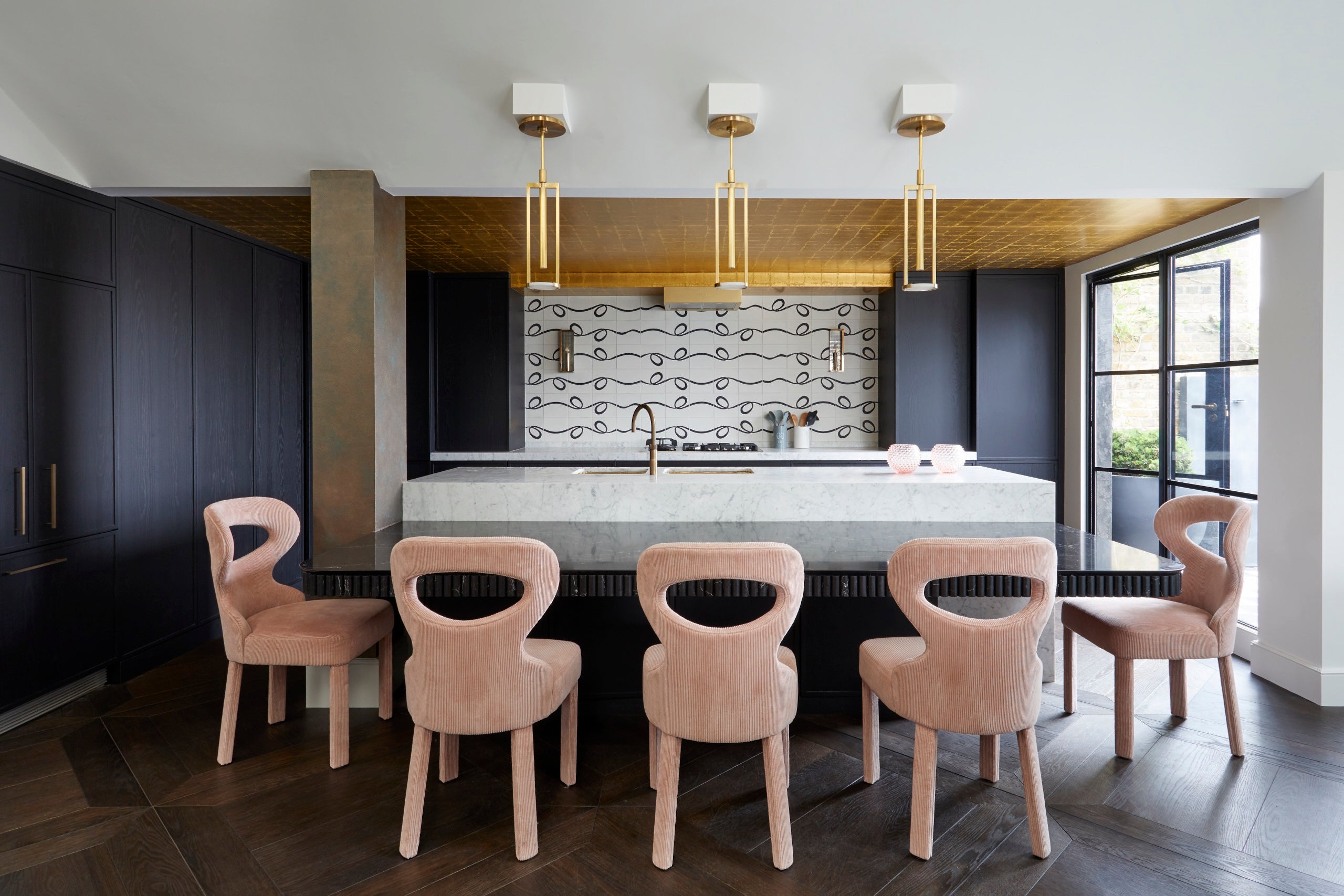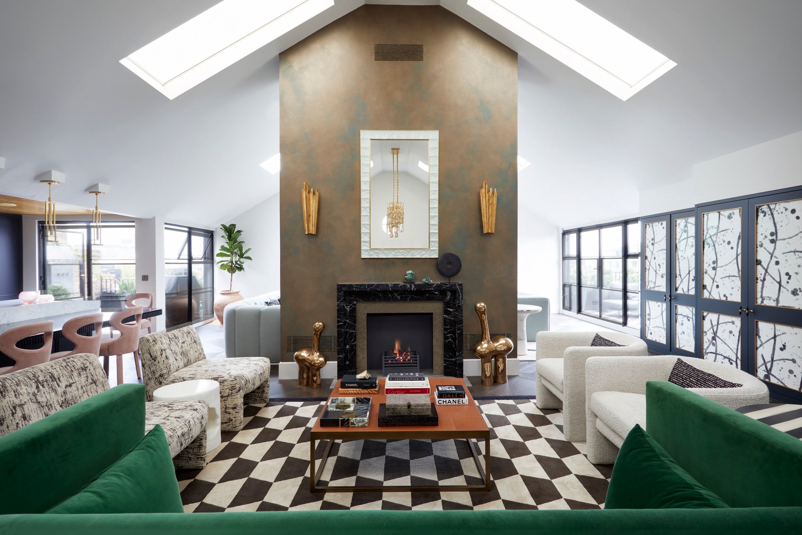 The Chelsea Penthouse, designed by Naomi Astley Clarke, is a dazzling example of high-end interior design where luxurious materials, playful creativity, and family comfort harmoniously blend. This duplex apartment, situated in the heart of Chelsea, London, offers expansive views of the city skyline. Naomi worked closely with the client's architect and structural engineer to perfect the layout, optimizing natural light and creating fluid, open-plan spaces ideal for entertaining. The interiors are brought to life with a dramatic mirrored staircase, sophisticated material palettes, and exquisite bespoke details that reflect both glamour and warmth. Each space within the penthouse is a visual narrative of texture, light, and design mastery, capturing the essence of contemporary luxury.