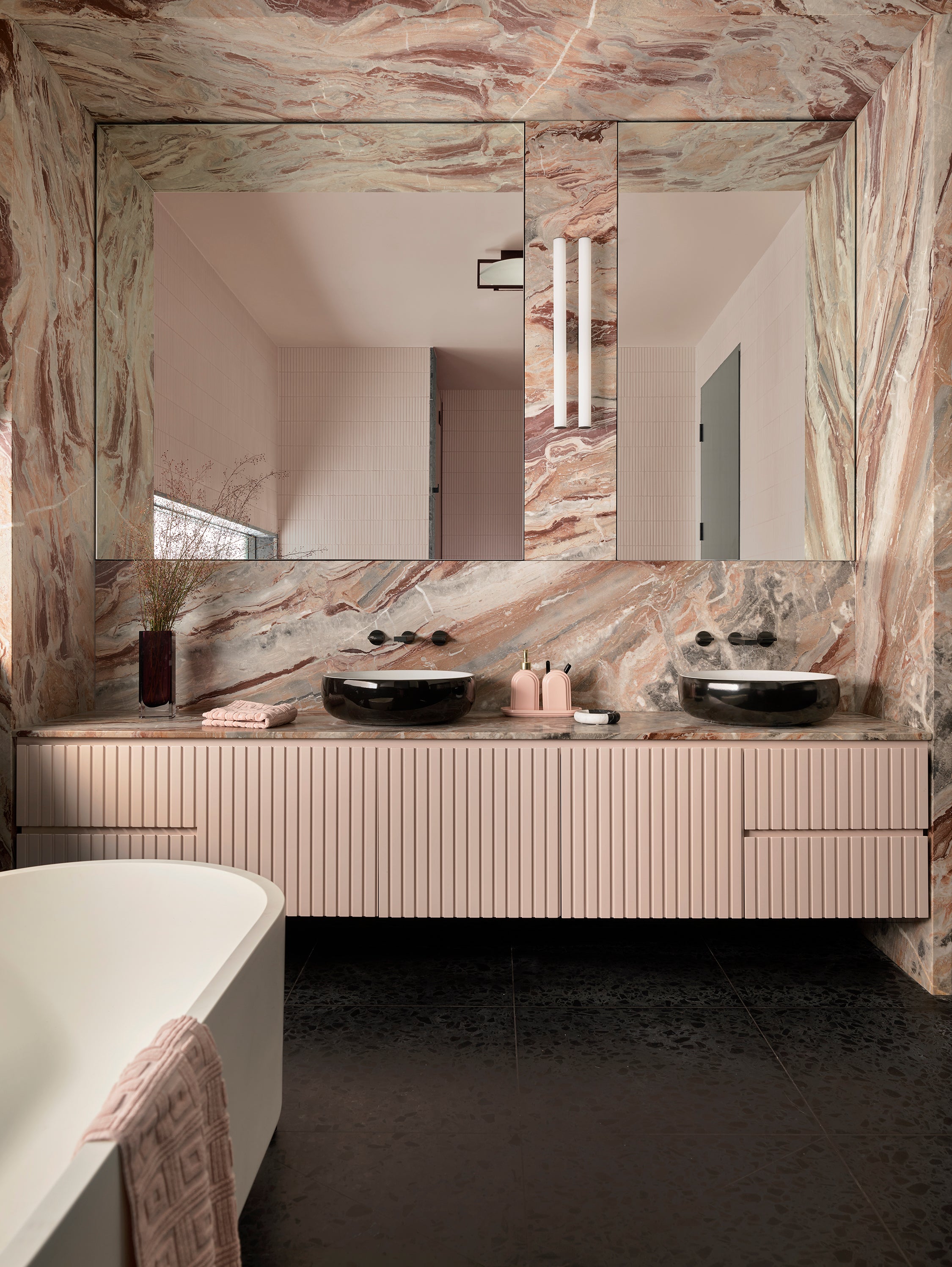 With its monolithic concrete exterior, Greg Natale’s latest project in New South Wales is a bold marriage of stark brutalism and rich contemporary design. Looking to transform their typically modern, all-white family home, the owners approached Greg Natale to manifest a space full of meaningful colour and tonal depth. Let’s explore how he did it...