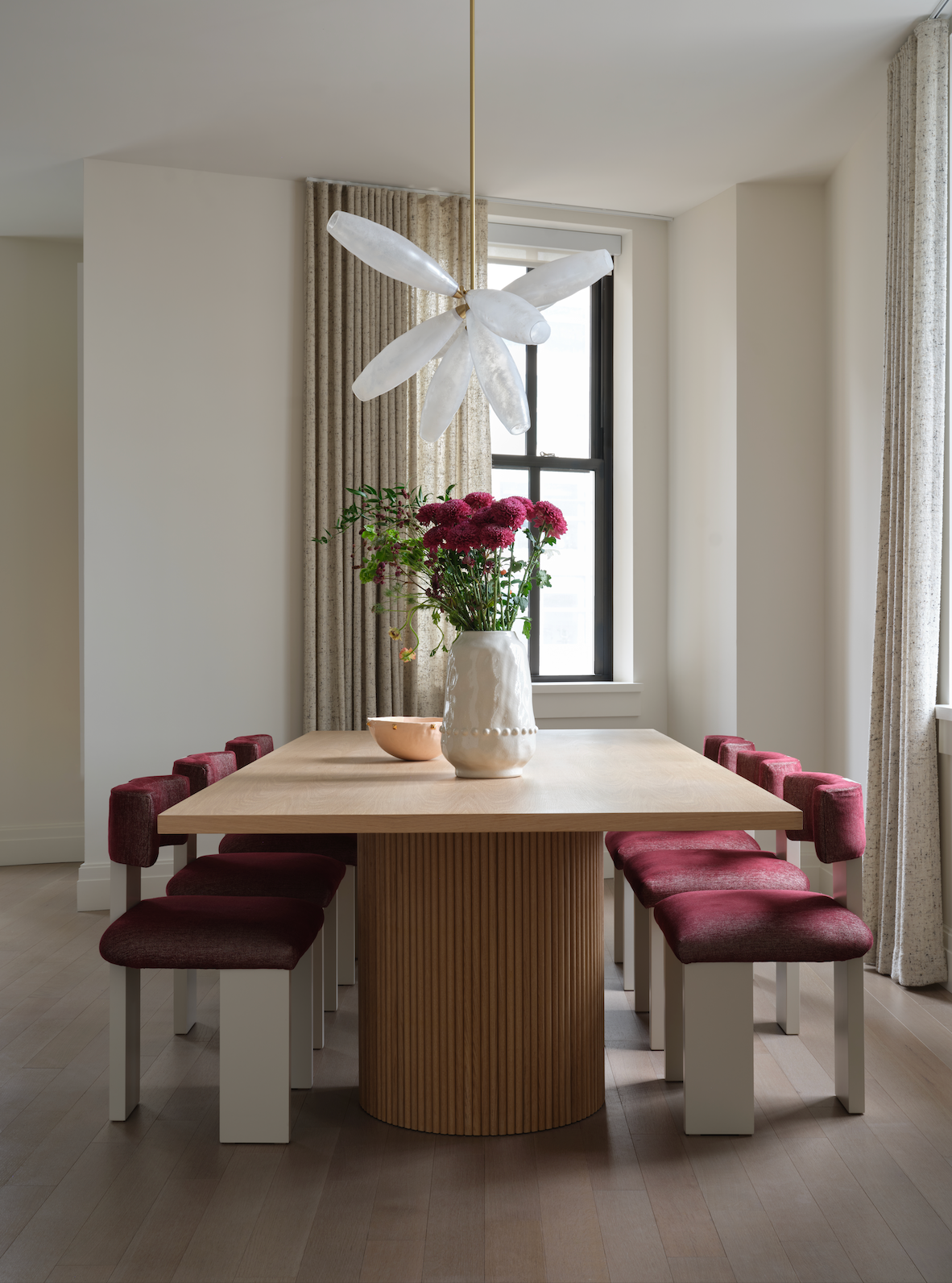 Her work spans thoughtful city dwellings to family homes designed for real life. In a recent project on Long Island, she balanced mid-century modern style with everyday practicality, designing spaces for a busy family that are as functional as they are calming.